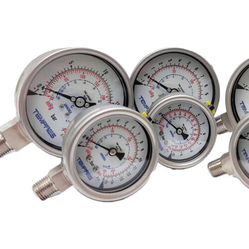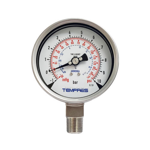 Manómetros para refrigeración industrial (Amoniaco/NH3), unidades condensadoras, almacenamiento frio, sistemas de supermercados, sistemas de aire acondicionado, bombas de calor, frigoríficos, etc.
