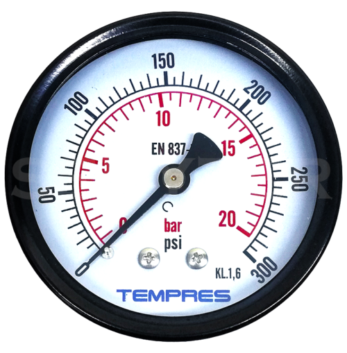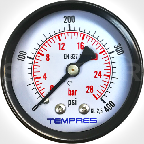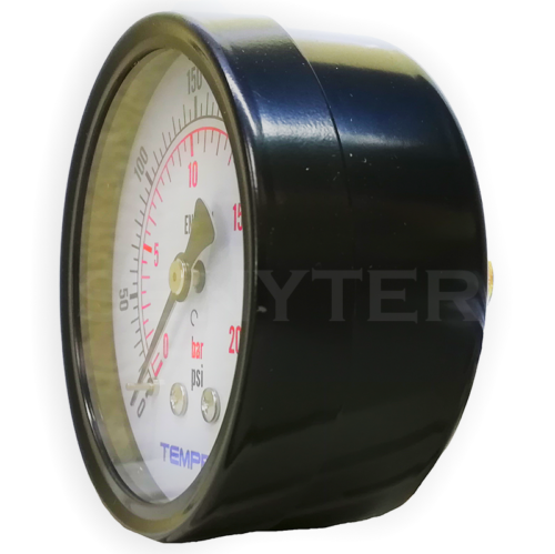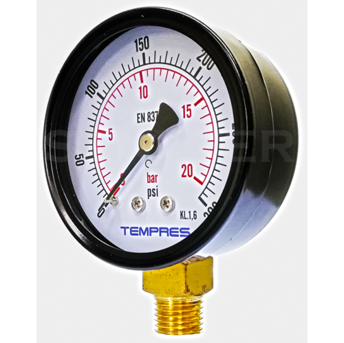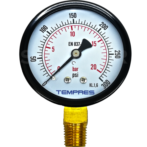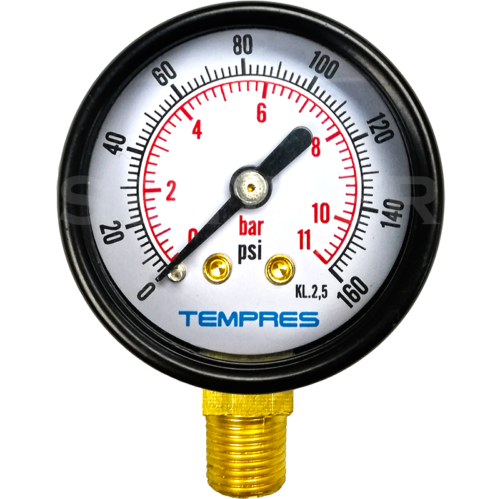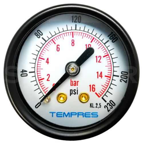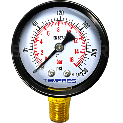 Manómetros Standard caja negra con conexión en bronce. Estos no se pueden llenar con glicerina y son de uso general, agua, aire, aceite, etc. (no apto para fluidos de alta viscosidad, presiones pulsantes y vibraciones).